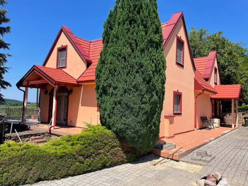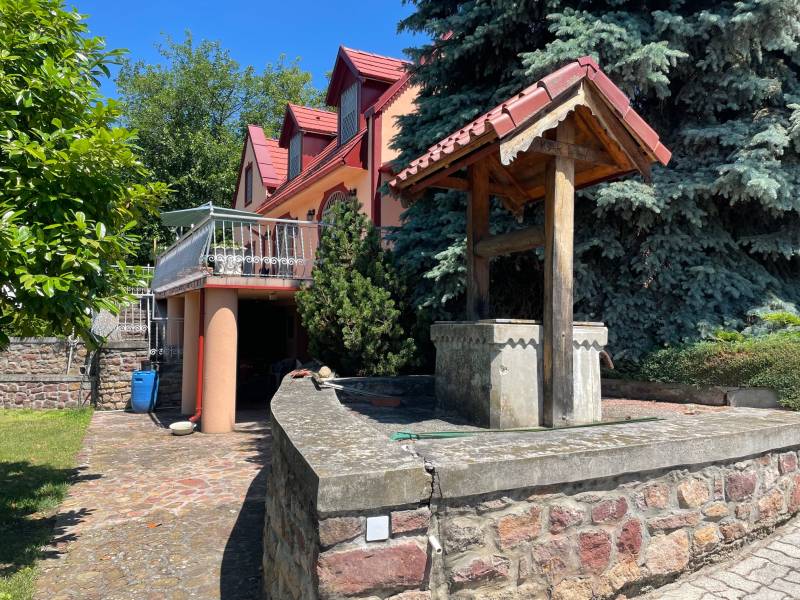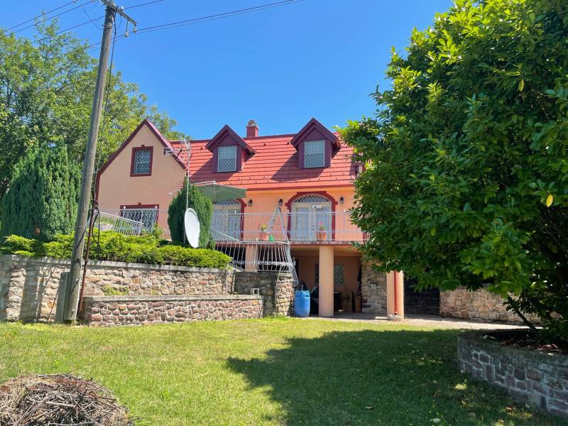 BADACSONYÖRSÖN LENYŰGÖZŐ TÁJPANORÁMÁS, MINŐSÉGI LAKÓHÁZ ELADÓBadacsonyörs külterületén páratlan természeti környezetben álló, gyönyörű örökpanorámás, jól megközelíthető, téglaépítésű családi házat kínálunk eladásra.A természetvédelmi területen való elhelyezkedése – a balatoni kék-túra útvonal a ház előtt vezet -, a végtelen nyugalom kedvelői körében tehetik vonzóvá az ingatlant. A 2002-ben épült háromszintes ház lakóterülete (teraszok nélkül) 254 m2. Az elegáns, nagypolgári stílusban kialakított otthon minőségi alapanyagok felhasználásával, egyedi megoldásokkal nyűgözi le az oda belépőket. A csodás amerikai konyhás nappali-étkezőn kívül 4 hálószoba és 4 fürdőszoba teszi lehetővé akár több generáció számára is a kényelmes együttélést, illetve nyaralást. A hatalmas teraszról páratlan badacsonyi tájpanorámában gyönyörködhetünk. Az egyedi gyártású vörös tölgy konyhabútor és az emeltre felvezető csodás falépcső a tulajdonos keze munkáját dicséri. A tágas terek, a verőfényes helyiségek elegánssá és derűssé teszik a házat. A szuterén szinten – mivel a helyiségek ablakosak – szintén kialakítható egy önálló lakrész. Műszaki tartalom: a fűtést elektromos padlófűtés biztosítja. Nyílászárói egyedi készítésű fa és fém kombinációból készültek, hőszigeteltek, mindenhol ráccsal védettek. Vízlágyító rendszer, riasztórendszer is beépítésre került. Közművek: villany, víz bevezetve, csatorna, gáz nem elérhető a környéken.A ház tulajdonosai aprólékos gonddal tervezték és valósították meg elképzeléseiket és tartják folyamatosan karban az ingatlant. A ház 2019-ben új, korszerű cserépfedést, 2021-ben pedig új homlokzatot kapott.A telken számos személyautó parkolására térkövezett udvar áll rendelkezésre, valamint egy garázs, amelyből akár egy vendégapartman is könnyen kialakítható, mert egy fürdőszoba már elhelyezésre került benne. Az udvaron két autó számára fedett kültéri autóbeálló is készült. A telek 2542 m2 (45 m utcafronti szélességű), gyönyörűen parkosított, leginkább egy arborétumra emlékeztető. Dísznövényekkel telepített. A kút közepes hozamú jelenleg, de egy tisztítás után ez jelentősen növelhető. Az ingatlan tehermentes, tulajdoni lapon egy helyrajzi számon, az alábbi minőségben nyilvántartott:„kivett lakóház, udvar, gazdasági épület 1035 m2 és szántó 1507 m2”, tehát a kifüggesztéses eljárás vonatkozik rá. Elhelyezkedése: Badacsonyörs vasútállomás és buszmegálló 2 km, a tomaji strand 3,8 km-re, a gyönyörű Folly arborétum 2 km távolságra elérhető.A ház jól megközelíthető, aszfaltos úton, az utolsó 200 méteren jó minőségű földúton.Badacsonyörs a Balaton nyugati medencéjének északi partján fekvő város, a Tanúhegyek legnagyobbikának, a Badacsony hegynek védettségében mediterrán hangulata, éghajlata miatt rendkívül kedvelt település. A tó lágy vize, a hegy lankái, a zamatos bor, a csodálatos kilátás, a tiszta levegő rabul ejti az itt élők és az ide érkezők szívét. Badacsonyt legalább annyian ismerik kiváló borairól, mint a balatoni strandokról, kikötőről. A hegy egyszerre névadója és központi termőterülete hazánk egyik legősibb és leghíresebb borvidékének, amelyhez még Ábrahámhegy, Badacsonytomaj, Badacsonytördemic, Balatonrendes, Balatonszepezd … tartozik. Építész- és ingatlanközvetítő irodánk minden hiteles szakmai segítséget meg tud adni, mellyel segíteni tudjuk döntését. Kérje az ingatlan részletes tájékoztató anyagát! Kövesse Balatoniingatlanguru facebook és balatoni_ingatlanguru instagram oldalunkat. Megtisztel bizalmával, ha segítségére lehetünk új otthona megtalálásában vagy ingatlana értékesítésében! Hívjon bizalommal! Balatoni ingatlanguru – több mint közvetítő