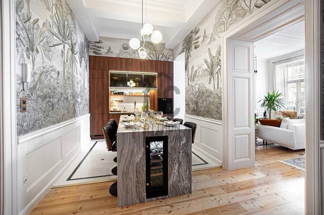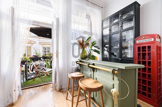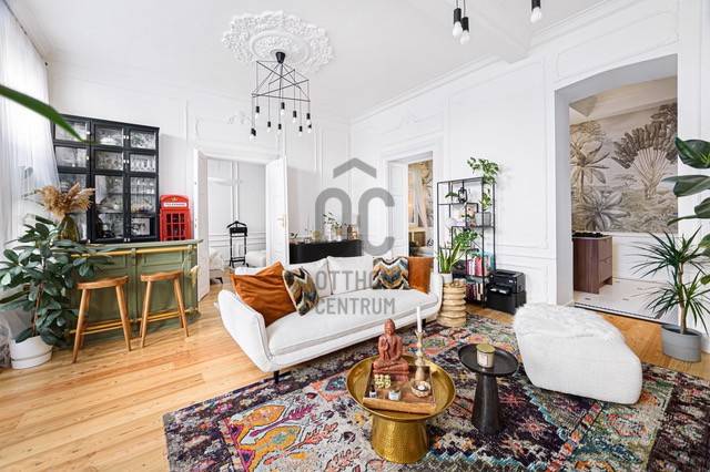 ELADÓ UTCAI NÉZETŰ, ERKÉLYES, 2 HÁLÓSZOBÁS NAGYPOLGÁRI LAKÁS AZ V. KERÜLET EGYIK LEGKIEMELTEBB RÉSZÉN!A LAKÁSBAN A KLASSZIKUS ÉS BOHÉM RÉSZLETEK SIMULNAK ÖSSZE ELEGÁNS EKLEKTIKÁBAN ÚJRAÉRTELMEZVE EZZEL A NAGYPOLGÁRI STÍLUST.A lakás Budapest történelmi belvárosának egyik legszebb macskaköves utcájában található, egy 130 éves műemlékvédelem alatt álló ház második emeletén.A lakás teljes körű felújításon esett át, lakberendező által tervezett exkluzív belsőépítészeti megoldásokkal és berendezéssel. A felújítás során teljes műszaki és esztétikai csere történt a legmagasabb minőségben az alapoktól.-Teljes elektromos hálózat csere-Korszerű gáz cirkó fűtés, és új radiátorok kiépítése (Viessmann kazán)-Hűtő/fűtő klíma kialakítása-Teljes vízvezeték csere és új fürdőszobák kialakításaA nyílászárók az épület eredeti borovi fenyő ablakai, melyek az eredeti állapotában restaurálásra kerültek és kétrétegű hővédő üvegezéssel lettek ellátva. A falak az épület és a lakás korszellemének megfelelően elegáns díszítést kaptak, valamint az előszobában és a konyhában angol fal fa burkolat lett kialakítva.A konyhabútor egyedileg gyártatott, AEG illetve Electrolux konyhagépekkel felszerelt, valódi kő konyhapulttal, gránit mosogató medencével. A konyhában beépített víztisztító adagolja a konyhai csaptelepen keresztül az ivóvizet.Két külön fürdőszoba került kialakításra, a kisebb közvetlen hálószoba kapcsolattal rendelkezik. A nagyobbik fürdőszoba az otthoni wellness szerepét tölti be, tágas méretei, a szabadon álló fürdőkád, és az egyedi épített zuhanyzó a relaxációnak ad teret. Itt található egy külön háztartási helyiség is, ahol helyt kapott a mosógép és egy plusz bojler gondoskodik a kifogyhatatlan meleg víz ellátásról.A kisebbik hálószoba az utcára néz, mégis csendes a második emeleti elhelyezkedésének köszönhetően. Az egyik falán padlótól mennyezetig egy hatalmas gardrób szekrény került beépítésre.A nagyobbik hálószoba udvari nézetű, és jól szeparált, saját fürdővel, akár egy kis önálló apartman az ingatlanban.A lakás alapterülete: 103 m2 + az erkély mérete.A közös költség: 42.000 Ft, mely tartalmazza a vízfogyasztást.A lakás közvetlen közelében az Egyetem tér, a Váci utca, a Vásárcsarnok, és a Duna-part.Számtalan étterem, kávézó, és bár, valamint bevásárlási lehetőség található karnyújtásnyira az ajtón kilépve.A parkolás helyi lakos kártyával ingyenesen a közterületen biztosított, vagy lehetőség van mélygarázs bérlésére a környéken.További információért és megtekintés miatt keressen bizalommal a hét bármely napján!