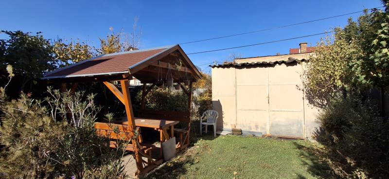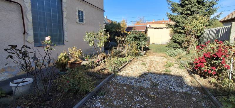Eladó Pécs Uránvárosban 64,9 millió forintért 100m2-es, 4 szobás ikerház 230m2 telekkel. A földszinten található a konyha, a nappali, fürdőszoba és különálló WC. A beépített tetőtérre lépcső visz fel az előtérbe ahol balról egy nagy világos szoba van terasszal amelyből egy hálószoba nyílik. Az előtérből jobb oldalon található szobából nyílik egy gardrób / tároló helység. Az udvarban kocsibeálló, szép kert és egy kerti kiülő pavilon van.A lakóingatlan összkomfortos, a fűtést gáz-cirkó kazán biztosítja. Az udvarban lévő tárolóban helyezhető el mindaz ami a kert és udvar gondozásához szükséges. A kertben lévő fedett kerti pavilon kiváló kiülési lehetőséget biztosít a család és barátok részére. Az udvarba történő beállás biztosított de a ház előtt az utcán is van parkolási lehetőség. Igény esetén a kocsibeálló végén álló tároló garázzsá alakítható át.A környék nyugodt és csendes. A közelben található buszmegállók és a vasútállomás gyors és kényelmes eljutást biztosítanak Pécs más részeibe, valamint a környező településekre is.DEUTSCH:In Pécs Uránváros, 4-Zimmer-Doppelhaushälfte für 64,9 Millionen zu verkaufenZu verkaufen in Pécs Uránváros für 64,9 Millionen Forint: 100 m² großes Doppelhaus mit 4 Zimmern und 230 m² Grundstück. Das Gebäude hat ein Erdgeschoss und ein Obergeschoss. Im Obergeschoss befindet sich eine Terrasse, im Erdgeschoss eine Garage und ein separater schöner Garten. Im Hof befindet sich ein Gartenpavillon.Im Erdgeschoss ist die Küche, das helle Wohnzimmer, das Badezimmer und ein separates WC. Eine Treppe führt zum ausgebauten Dachgeschoss, wo sich links ein großes, helles Zimmer mit Terrasse befindet, von dem aus man in ein Schlafzimmer gelangt. Vom Vorraum aus ist man rechts in einen dritte Zimmer von welche in einen Raum gelandet, welche der als Kleiderschrank (Garsrobe) oder als Abstellraum dienen kann. Die Wohnimmobilie ist mit allem Komfort ausgestattet. Die Heizung wird durch einen Gas-Zirkulationskessel gewährleistet.