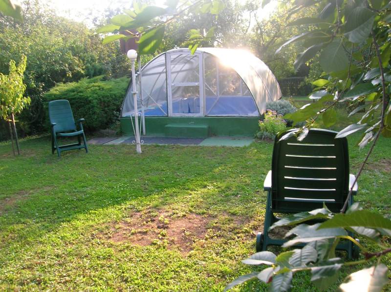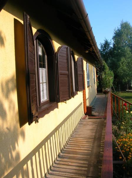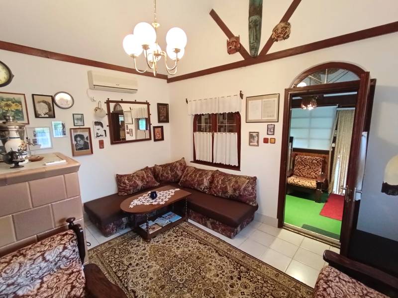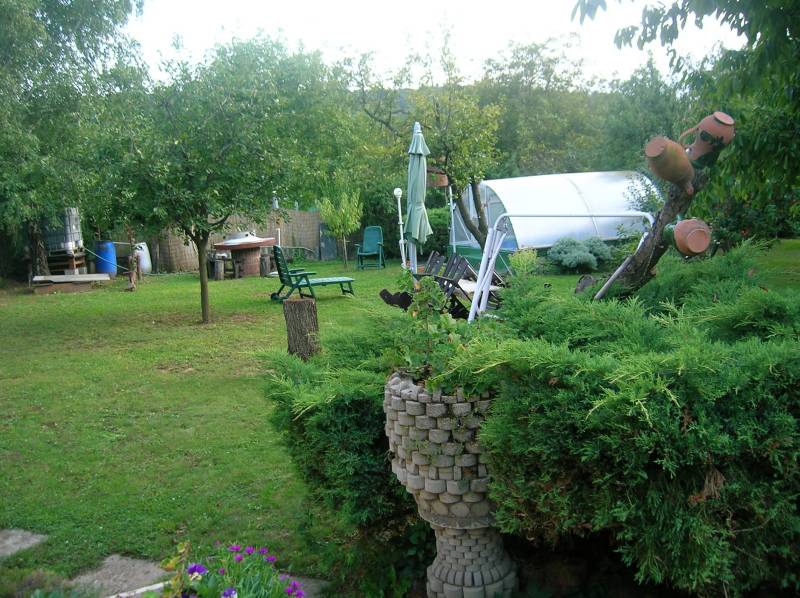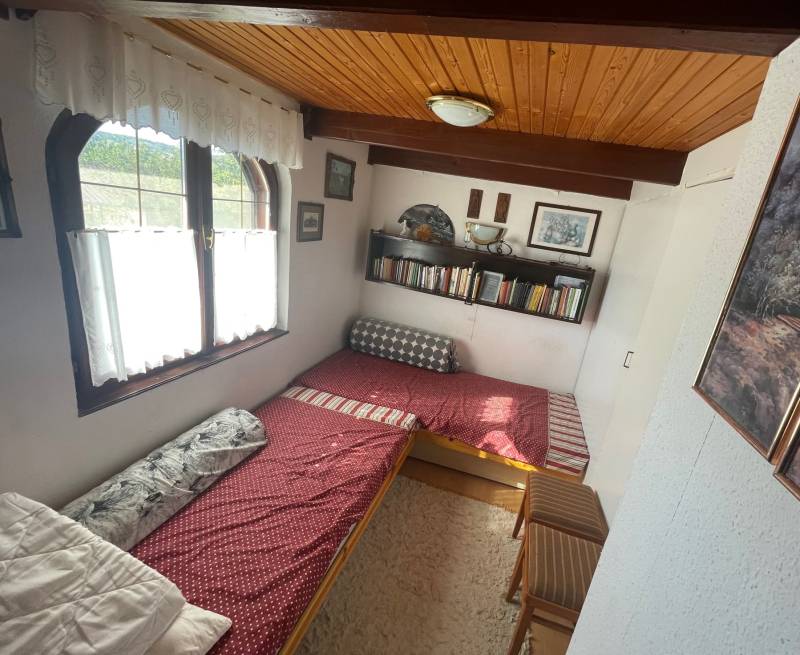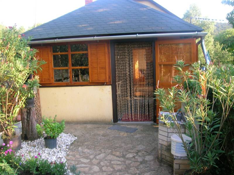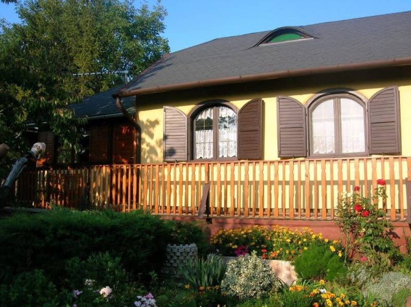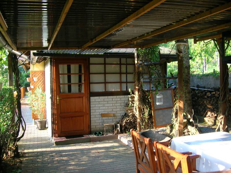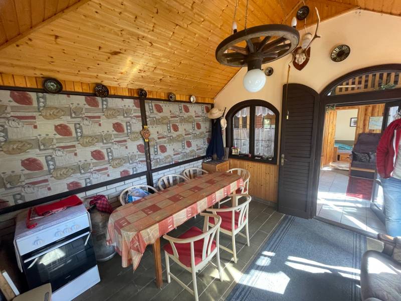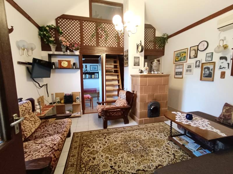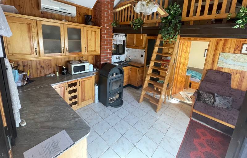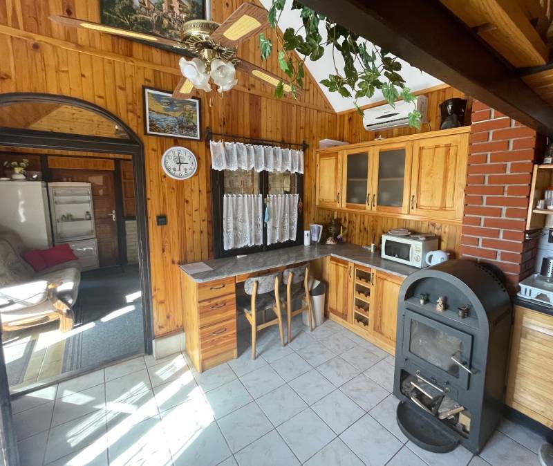 FELSŐÖRSÖN SZÉP TERMÉSZETI KÖRNYEZETBEN ÁLLÓ, HANGULATOS, KÉTEGYSÉGES NYARALÓ ELADÓFelsőörs Öreghegyen vált eladóvá ez a 90-es évek végén épült, külterületi nyaraló, melynek csendes, természetközeli fekvése azonnal elvarázsolja az ideérkezőt.Az Almádi úttól 170 m jó minőségű, télen-nyáron jól járható földúton közelíthető meg, de tömegközlekedéssel is könnyen elérhető, a buszmegálló mindössze 240 m.A terület 2210 m2-es saroktelek, két utca felől is bejárattal rendelkezik. Ideális, majdnem szabályos négyzet alakú (utcafronti szélességei: kb. 44,7 m).A gazdaságos öntözést ásott kút biztosítja. Termő alma-, cseresznye-, meggy-, sárgabarack-, szilva- és körtefákkal telepített. A telek mérete igény szerint további gazdálkodási lehetőséget nyújt. Jelenlegi állapotában rendezett, parkosított. Egy 4 X 2,5 m pince biztosítja a termény- vagy bortárolást.A személyautók elhelyezésére két garázs is rendelkezésre áll. A kertben több helyen is elhelyeztek fedett kiülő- és sütögető helyet, szerszámtárolót, valamit egy 80 cm mély, 3 X 4 m-es fedett kismedence is a kikapcsolódást szolgálja.A 105 m2-es ház a telek hátsó oldalhatárára épült, így a teraszáról a teljes kert és a környező erdős vidék jól látható.Két külön bejáratú lakrész került kialakításra, amelynek egyik szárnya hagyományos téglaépítésű, a másik oldal könnyűszerkezetes. A két lakrész természetesen egybe is nyitható. A tető zsindelyfedésű, a homlokzat 8 cm-es hőszigeteléssel ellátott. Nyílászárói fa gyártásúak, zsalugáterrel szereltek.Helyiségei:Bal oldali, könnyűszerkezetes lakrész: nappali, amely felett galériázott háló lett kialakítva, zuhanyzós fürdőszoba + WC, konyha, hálószoba, tágas előtér. Fűtése: klíma és lemezkandallóJobb oldali, téglaépítésű lakrész: nappali, galériázott háló, zuhanyzós fürdőszoba + WC, tágas előtér, hálószoba. Fűtése: klíma és cserépkályhaEzen az oldalon egy kb. 22 m2-es, könnyűszerkezetes kisház is áll, amely fedett terasszal össze lett kötve a főépülettel. Jelenleg nyári konyha, de választható funkciójú, pl. egy szaunás, zuhanyzós wellnes sarok is kialakítható benne.A terület a rendezési tervben Mk-1 övezetbe tartozik, így további bővítés már nem lehetséges. (3 % beépíthetőséget és 4,0 m max. építménymagasságot engedélyez)Közművek: víz, villany bevezetésre került, csatorna nincsElhelyezkedése: buszmegálló 240 m, Almádi, Káptalanfüredi strand 3,4 km, Alsóörs strand 5 km, élelmiszerbolt 1,7 km távolságra érhető el. Almádi közelsége biztosítja a komolyabb infrastruktúrát, kulturális lehetőségeket.Tulajdoni lapon egy helyrajzi számon, azon belül két minőségben nyilvántartott ingatlan:a) szőlő 558 m2b) kert és gazdasági épület (2 egységes, iker) 1652 m2Adásvétele kifüggesztés köteles.Felsőörs a Balaton-felvidék azon települései közé tartozik, ahonnan – legalábbis a település egy része felől – látni lehet ugyan a Balatont, de saját tóparttal a helység nem rendelkezik. Páratlan természeti adottságú környezetben, a tóparttól mindössze 4 kilométerre fekszik. A csend és nyugalom álomszerű vidéke. A felsőörsi táj karakterét a mai napig is a szőlős- és gyümölcsöskertek, erdővel borított lankák határozzák meg, és a jellegzetes Balaton-felvidéki stílusban épült épületek.Építész- és ingatlanközvetítő irodánk minden hiteles szakmai segítséget meg tud adni, mellyel segíteni tudjuk döntését. Kérje az ingatlan részletes tájékoztató anyagát! Kövesse Balatoniingatlanguru facebook és balatoni_ingatlanguru instagram oldalunkat. Hívjon bizalommal! Balatoni ingatlanguru – több mint közvetítő