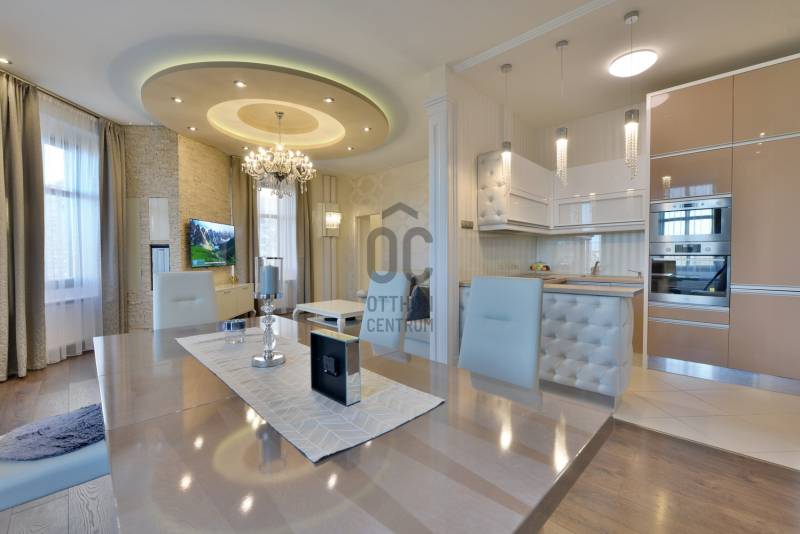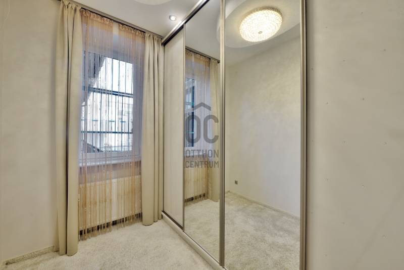 A lakás belsőépítész által egyedien megtervezett és prémium anyagokkal felújított 2014-ben teljes körű felújításon esett át, ami magában foglalja: új szigetelt padló betonalapot, új villanyvezetékeket mindenhol, vadonatúj nyílászárókat, biztonsági bejárati ajtót, áramkapacitás bővítését, szigetelést a plafonban és az oldalfalakban is, gázkazán kiépítését, modern életterek kialakítását, új beltéri burkolatokat és ajtókat. Max City-s elegáns tapétákkal és belső burkolatokkal, tágas és világos helyiségekkel, nagypolgári térérzettel.A felújítás során kialakításra került :- nagy gardróbszoba,- hálószoba, - dolgozósarok, - 40 nm-es nappali-konyhával együtt,- vendégszoba, illetve - egy-egy tároló-mosó helyiség.Saroklakás, utcai nézetű, zárt lépcsőházból nyílik.Rendkívül világos 6 db nagy, utcai ablaknak köszönhetően, nem található épület előtte a fronton, ami takarná a kilátást, és nem is építhető elé egyéb ingatlan.A gépesítés az ár részét képezi: teljesen felszerelt konyha kb. 6 millió forintos jelenlegi értéken, gardrób-szekrények kb 3 millió forintos jelenlegi értéken, lámpatestek. A nem beépített bútorok nem a vételár részei.Biztonság: extra biztonsági ajtó (gyártó: DTP) + riasztóA ház homlokzata 2000-ben teljesen meg lett újítva. A lépcsőház teljes körű felújítása ezekben a hónapokban zajlik (szigetelés, festés, nyílászárók felújítása)A lakáshoz opcionálisan bérelhető teremgarázs hely kb. 100 m-re a lakástól.Opcionálisan a ház pincéjében egy kb 15 nm-es felújított tároló is megvehető a lakáshoz, amelynek további 5 millió forint az ára.