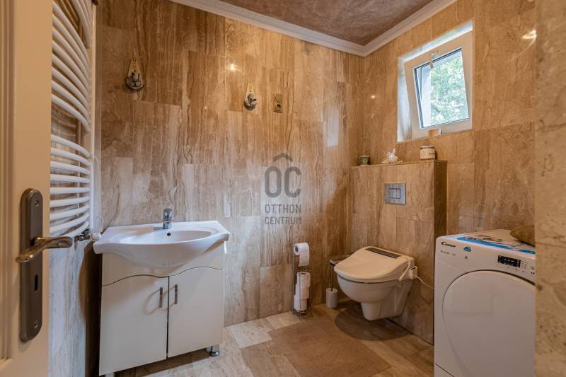 -Csak Nálam-Az ingatlanról VIDEÓBEJÁRÁS készült, -kérje üzenetben!Göd az északi agglomeráció gyöngyszeme, egy tüneményes kertváros a Főváros zajától távol, ám annak biztonságot nyújtó közelében.Híres jó nevű iskoláiról, páratlan Duna partjáról, pezsgő kulturális életéről, így méltán vált a zöldbevágyó otthont keresők kedvenc célpontjává.Itt, a város egyik legjobb részén, alsógöd dunai oldalán került eladósorba egy jó adottságú ikerházfél.Az utca melyben helyet kapott igazi vadregényes gyermekparadicsom, átmenőforgalomtól mentes, csendes környezet egy kőhajításnyira a Dunától!A ház fiatal, 2002-es építésű, ehhez mérten korszerű, jó állapotnak örvend. Külsején dryvit palást, hőszabályozását radiátorokkal kombinált padlófűtés üzemelteti kombi cirkókazánról.Földszintjén tágas szélfogó/előszoba, kamrakapcsolatos konyha, hatalmas nappali-étkező, fedett terasz, háztartási helyiség és szeparált illemhely alkotják a helyiséglistát. A terek nagyok, kényelmesek, a sok nyílászáró csordultig tölti fénnyel a helyiségeket.A nappali éke a kandalló, mely nem csak látványelem, -pillanatok alatt csempészi be az Otthon melegét és teremt hangulatot a köré gyűlő Családnak.Emeleti szinten jelenleg 2 hálószoba, finn szaunával felszerelt fürdőszoba és egy trófeaterem-tárgyaló található. A tárgyaló 14m2, egy darab fal felhúzásával tágas erkélykapcsolatos hálószobává alakítható, -ahogy az eredeti terveken is szerepelt, így nappali + 3 hálószobás kialakítást érünk el :)A kert éppen elég méretű, közel 300m2. Telepíthető bele medence, elfér a grillterasz, játszótér, homokozó.Helyet kapott benne egy garázs, sziklakerti dísznövények és egyedi hangulatú impozáns kovácsoltvas kerítés díszíti az utcafrontot.Közelben: iskola, óvoda, bicikliút, buszmegálló (Újpest városkapu 30p) , városi buszjárat megállója, élelmiszerbolt, kifőzde, pékség, fodrászat, ATMJöjjön el, tekintse meg ha egyedi hangulatvilágú Otthont keres, ha Göd legszebb részén tervezi jövőjét!-ALAPRAJZ FELTÖLTÉSE FOLYMATBAN-