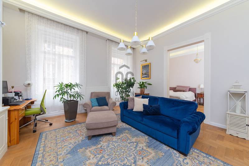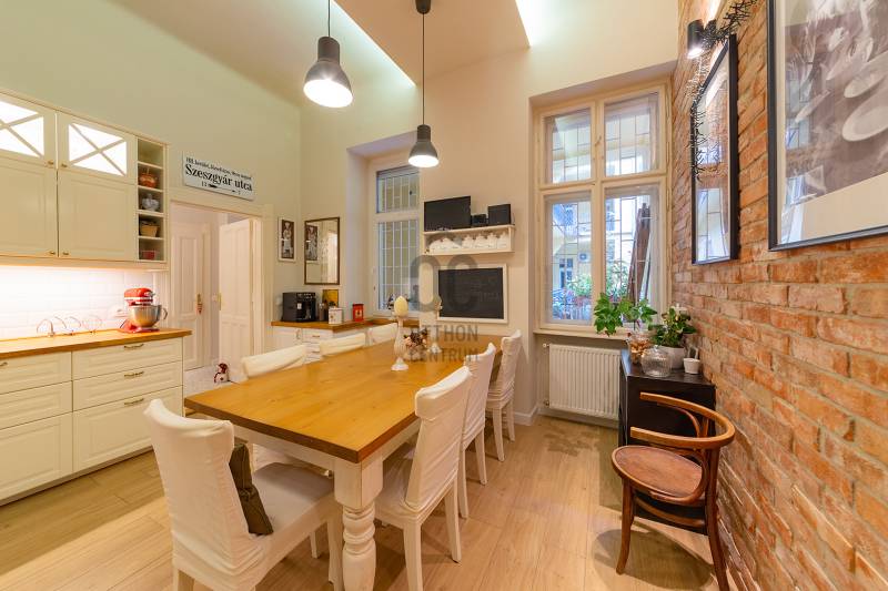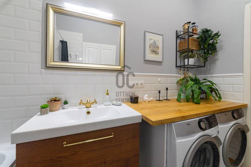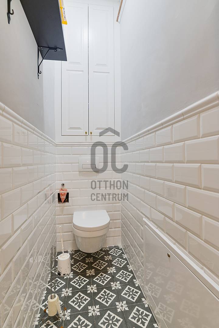 Lépjen be ebbe a 2020-ban teljeskörűen felújított, polgári otthonba, amely tökéletes harmóniát teremt az elegancia és a modern kényelem között. Ez az igényesen berendezett erkélyes, kétszobás lakás egy patinás, régi építésű házban található, amelynek köszönhetően a tágas terek és a családias hangulat azonnal magával ragadja. A kitűnő lokáció páratlan kényelmet biztosít, a Budai Várnegyed csupán néhány perc sétára van, felejthetetlen élményt nyújtva a város szívében. A két kényelmes szoba mellett a hatalmas konyha az otthon igazi központja, mely méltó díszlete lehet a mindennapi életnek és a vendégfogadásnak egyaránt. Ez az ingatlan egy valódi, értékálló ékszerdoboz a főváros egyik legkeresettebb részén.Konyha: a burkolat olasz kerámia lap, angol metro csempe (fehér és spanyol mintás kivitel), külső szeletes bontott téglafal. IKEÁ-s konyhabútor fiókvilágításokkal, motoros szelektív szeméttároló. Electrolux gőzpároló sütő, hob to hood rendszerű indukciós nagy méretű főzőlap és elszívó rendszer, AEG mosogatógép, amely applikációval vezérelhető, Bosch kombinált hűtőszekrény. Az előszobában és a mosdóban lengyel, a fürdőszobában magas kopásállóságú lengyel greslap padló burkolatok vannak, angol metro csempe - extra élzárókkal. A nappaliban és a hálószobában tölgyfa padló.A lakás fűtése kétkörös padlófűtés, a konyhában, a fürdőben és a wc-ben. A fürdőszobában extra meleg kör a kényelmes padlóérzetért és egy törölköző szárító. A radiátor csövek rejtettek.A fűtés és a hűtés GREE-indukciós hűtő-fűtő klímával is megoldható, applikációról vezérelhető. Az utcafronton a redőny motoros, amely applikációról vezérelhető. A vezetékek és a csövek az 5 éve végrehajtott lakásfelújításkor teljesen kicserélődtek, az ingatlan akkor gyakorlatilag a tégláig vissza lett bontva. A bejárati és az erkélyajtó is újra lett gyártatva, a 121 éves hagyományoknak megfelelően fából.Az erkély új vízszigetelést és új spanyol greslap burkolatot kapott, és kizárólag magas minőségű alapanyagokat építettek be.A nappaliban egy beépített, egyedileg készített könyvtár-polcrendszer, a hálószobában pedig egy nagy méretű gardróbszekrény található, kiváló asztalosmesterek profi munkái. A lakás előtt található 20 m2-es gangrész szokásjog alapján az új tulajdonos kényelmét szolgálja, így ide akár egy kerti bútor is kihelyezhető székekkel, mely a legnagyobb nyári melegben is hűvös marad.