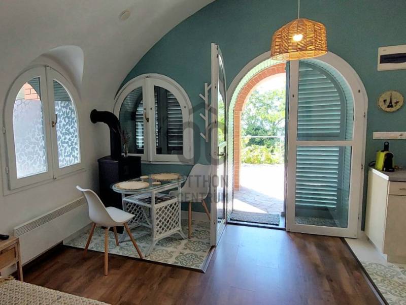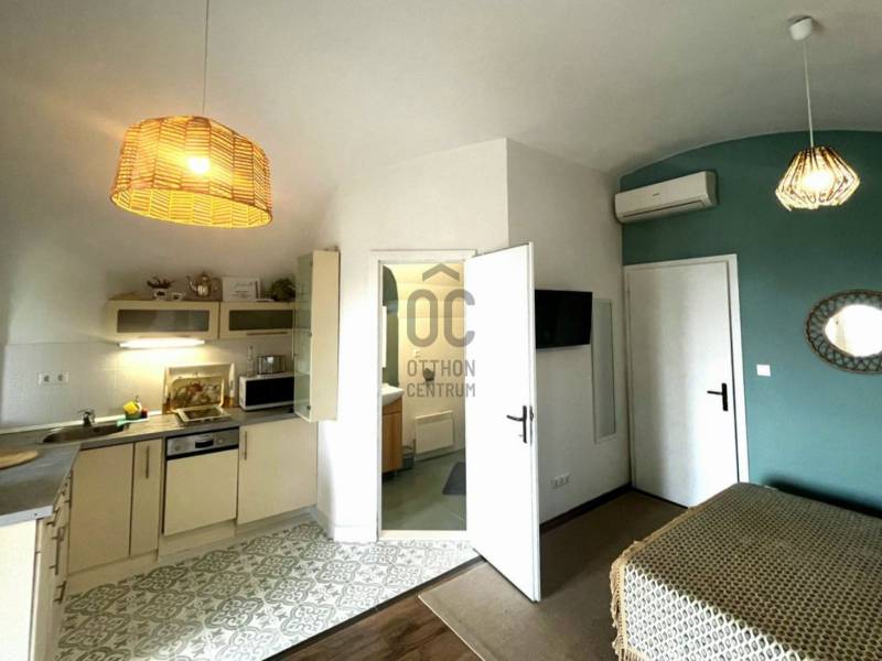 A Kisfaludy útról nyíló zsákutcában jó megközelíthetőséggel rendelkező felújított apartmant közel 50 nm terasszal ajánljuk figyelmébe. Az ingatlan főbb jellemzői: - A ház jelenleg használt 22 nm-es lakrészén a konyha-étkező-háló mellett egy fürdőszoba került kialakításra. - A ház hátsó részében található 14 nm-es borfeldolgozó átépítésével a lakótér növelhető. - Az épület oldalánál kialakított téli kert mozgatható elemekkel igény szerint nyitható-zárható. - A lakótér fűtését az elektromos panelek mellett fatüzelésű kandalló is biztosítja. - A felszerelt hűtő-fűtő klíma télen-nyáron gondoskodik a megfelelő hőmérsékletről. - Vezetékes víz – ami a hegyen kincs, és nem mindenhol elérhető rendelkezésre áll.- A 839 nm-es területen lépcsőzetes kialakítású, bazaltkő támfallal tagolt fűszerkert található- A 25 nm-es fém üvegházban szinte minden megtermelhető- Az autó tárolásra és beállásra fedett autótároló készült, melyet elektromos kapu nyit.- Az épület riasztó rendszerrel rendelkezik- Az épület előtti bazaltkővel kirakott terasz jó időben tökéletes helyszín a pihenésre, és a szabadtéri étkezésre lenyűgöző panorámával a Balatonra és a környező településekre.Ha kisméretű, könnyen karbantartható nyaralót keres, vagy szálláskiadásban gondolkodik, úgy tökéletes választás a meghirdetett ingatlan!Amennyiben felkeltettem érdeklődését, úgy várom hívását!