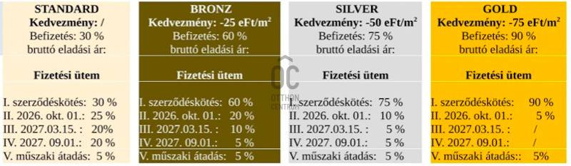 Projekt bemutatásaEXKLUZÍV ÚJ ÉPÍTÉSŰ LAKÁSOK DEBRECEN BELVÁROSÁBANPrémium életminőség | Időtálló érték | Bevezető ár: 1.399.000 Ft/m²ELŐÉRTÉKESÍTÉS ALATT EXTRA NM-ÁR KEDVEZMÉNYEKKEL MÁRCIUS 1 -ig. Standard felszereltségű lakásokra-hitelmentes konstrukció esetén, GOLD fizetési konstrukcióval ! 1.324.000 Ft/nmDebrecen belvárosának közvetlen közelében, kisvárosias eleganciával övezett környezetben valósul meg a Társasház, ahol a modern városi luxus és a nyugodt, kifinomult életstílus találkozik.A saroktelken elhelyezkedő épület elhelyezkedése kivételes: könnyű városi hozzáférés, mégis nyugodt, rendezett környezet – ideális választás azok számára, akik nem kötnek kompromisszumot. Prémium lakáskoncepció•Garzon, nappali + 1 és nappali + 2 szobás lakások•Erkélyes és loggiás kialakítás•Lakásméretek: 43–66 m²•Földszinti lakások exkluzív, kizárólagos kertkapcsolattal, a hirdetési ár nem tartalmazza a zöldterület árát ( 50.000 Ft/m2)Letisztult alaprajzok, kiváló térérzet, természetes fény – minden részlet az élhető luxust szolgálja.Belső kert – privát városi nyugalomA társasház belső udvara kertépítészeti terv alapján kialakított, parkosított pihenőkertként és közösségi térként funkcionál, ahol a zöld környezet diszkrét hátteret ad a mindennapi feltöltődéshez. Diszkrét parkolási megoldások•Pinceszinten kialakított, korszerű mélygarázs•Saját teremgarázs parkolóhely vásárolható: 10.900.000 FtFelszini parkóló vásárlási lehetőség elektromos autó töltő kialakitással! Magas műszaki tartalom – valódi prémium•Hővisszanyerős gépészeti rendszer•Padlófűtés minden lakásban•Fan-coil hűtés a maximális komfortért•POROTHERM X-Therm Rapid falazat, 15 cm hőszigeteléssel•Egyedi gyártású, háromrétegű üvegezésű nyílászárók•Távirányítású, elektromos alumínium redőnyök rejtett tokban•Prémium szaniterek: RAVAK, HANSGROHE•Falba épített WC-tartályok•8 személyes, akadálymentes, átmenő lift a pinceszinttől a III. emeletig Személyre szabható luxus•3 felszereltségi szint: Standard | Médium | Prémium•Többféle fizetési konstrukció, melyekkel exkluzív kedvezmények érhetők elEz nem csupán egy lakás, hanem egy életstílus.Ideális választás azoknak, akik hosszú távon értékálló otthont vagy prémium befektetést keresnek Debrecen egyik legjobb lokációjában.Részletes információ, elérhető lakások és alaprajzok érdeklődés esetén.